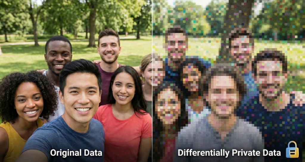 - Inject “Smart Noise”: Differential Privacy adds mathematical noise to datasets, ensuring that individual records cannot be re-identified, even if the aggregate insights remain statistically accurate.